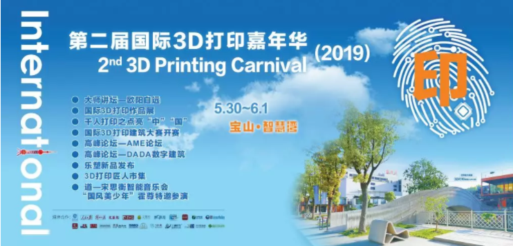 国际3D打印嘉年华由工业和信息化部工业文化发展中心、上海市张江高新技术产业开发区管理委员会和上海市宝山区人民政府共同主办,以千人3D打印“中国”字为主题,为献礼国庆70周年,共筑中国梦,通过向社会征集,在智慧湾园区及全市范围设置多个打印点,用极光尔沃3D打印机完成千余件作品打印,最后将组成巨型作品“中”、“国” 字,现场有航天员、明星、专家、政府领导共同见证“千人打印”作品诞生。