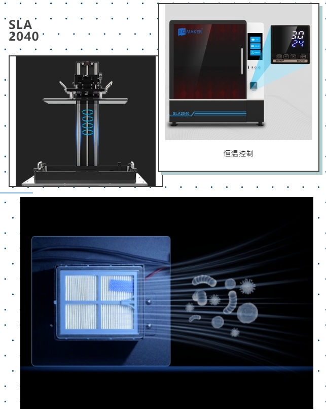 极光创新SLA 2040采用全钣金封闭式机箱设计,高端核芯搭配智能算法,加上内置的温度控制系统可保障打印作品稳定输出,四季从容。