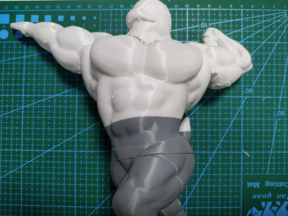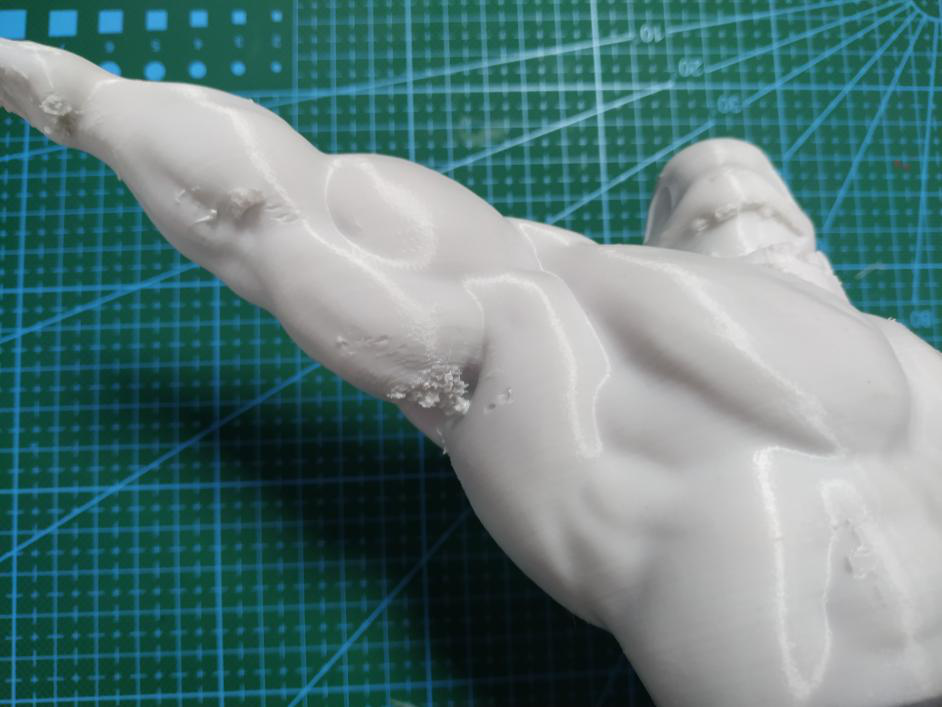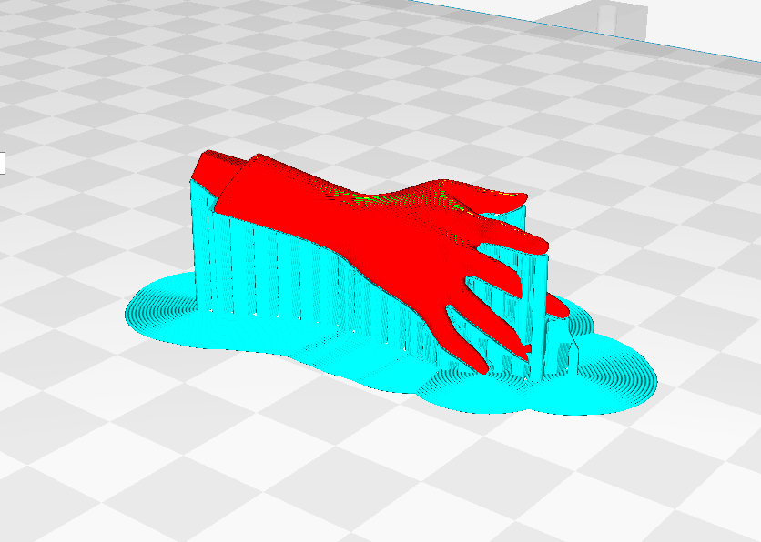 (如图,竖直打印不仅能减少支撑面,而且还能提高整个手臂的精度效果,但是实际打印中,由于很纤细极容易失败,只能牺牲表面效果来保证成功率。)