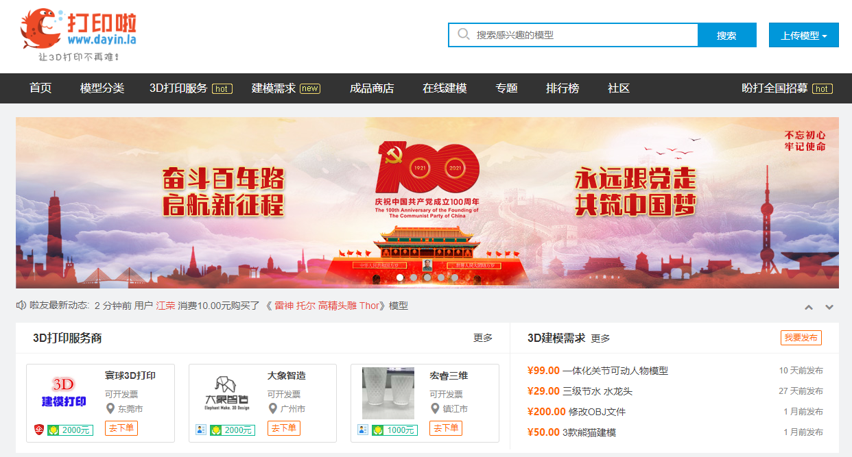 这是一个3D打印资源整合的一个网站,上面涵盖的内容也很全面,包括打印服务、社区、学习部落等???。