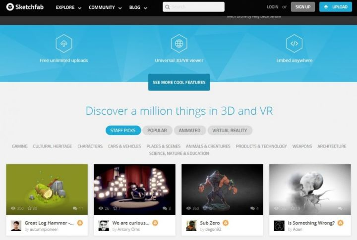 Sketchfab这个3D模型下载网站最主要有一些3D卡通人物及雕塑,每个模型都可以让你360度旋转欣赏。网站内的3D模型相信多达一百万个,有些是可以3D打印出来,而有些可能只适合用作製作3D电脑动画。有时间可以进去逛逛,裡面有很多有趣的3D模型。