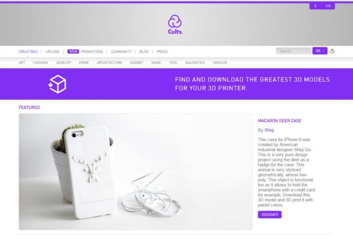 Cults 有免费及付费的3d模型下载。它是一个法国的网站,他们的卖点是所有3d模型的设计都非常漂亮,很多都由专业设计师设计。这网站设有英文语言,所以不用担心看不懂。