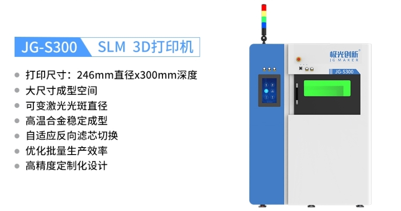极光创新SLM成型系列JG-S180、JG-S300、JG-S255等金属3D打印机均具备多种金属材料打印能力,不仅可以打印铝合金材料,还可成功打印不锈钢、高温合金、钛合金、高熵合金等金属材料,并且可以直接制成传统工艺方法难以制造甚至无法制造的复杂金属终端产品,致密度最高可达99.98%,可有效提高金属材料的利用率,降低制造成本。