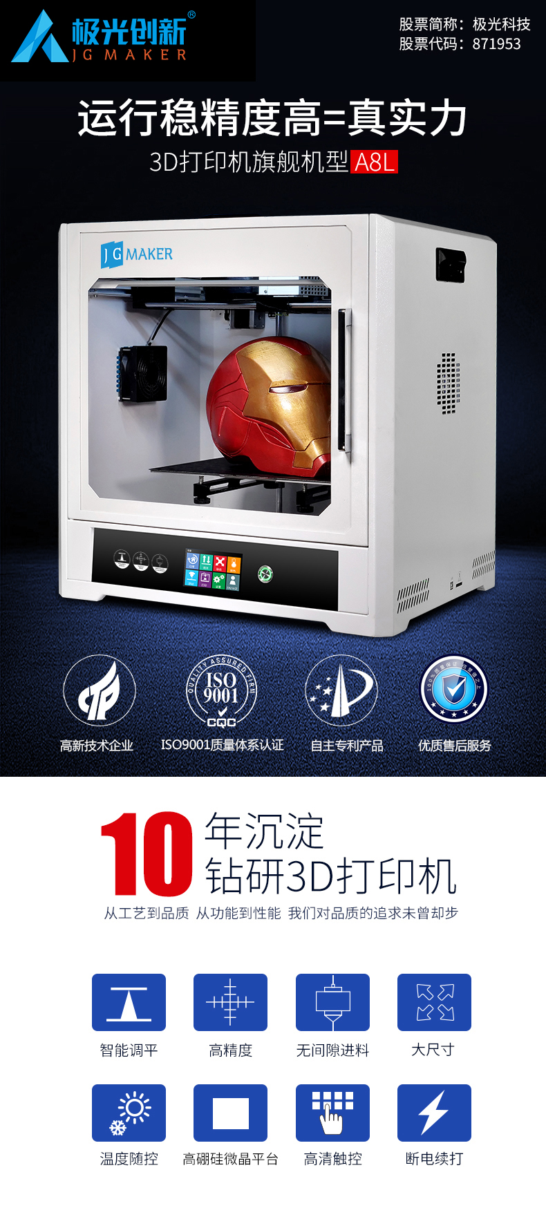 JG-E8L 商用级高精度3D打印机