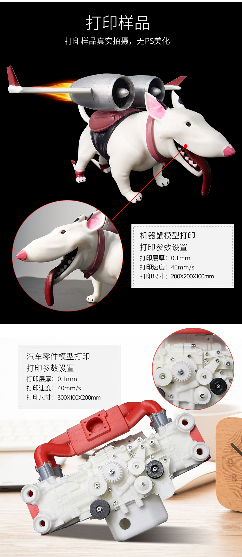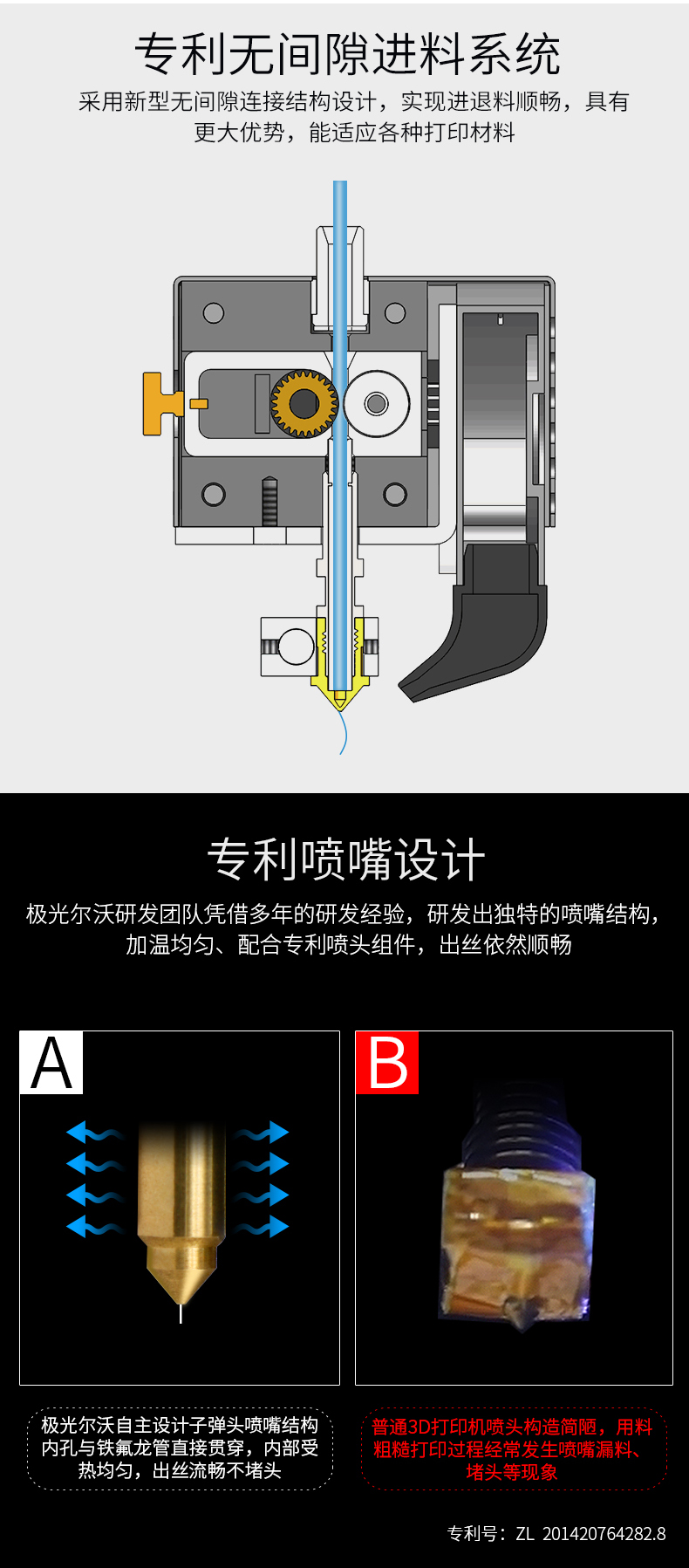 全球首创双电机传动送料结构,并配备高品质德国进口配件,打印精度媲美艺术品,这是一款追求“精确、精密、精致”的3D打印机。