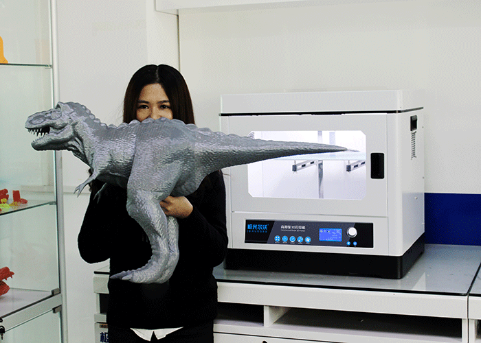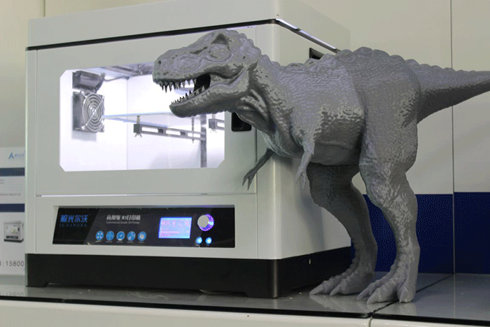 大恐龙是怎么3D打印出来的?极光尔沃的恐龙爱好者介绍:“其实也没想象中那么难,只需要建好模型,用软件转一下代码,就可以3D打印出来了,如果不会建模,也可以直接到一些3D云平台下载,素材也相当丰富,差不多都可以找到自己想要的模型?!?/p>